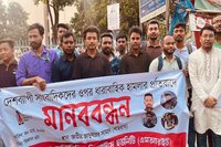 সাংবাদিকদের ওপর হামলার প্রতিবাদে এমআরইউর মানববন্ধন