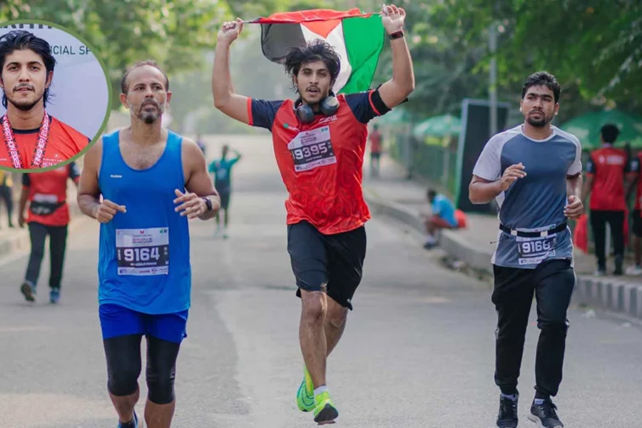 ফিলিস্তিনের পতাকা হাতে ম্যারাথনে তৌসিফ মাহবুব