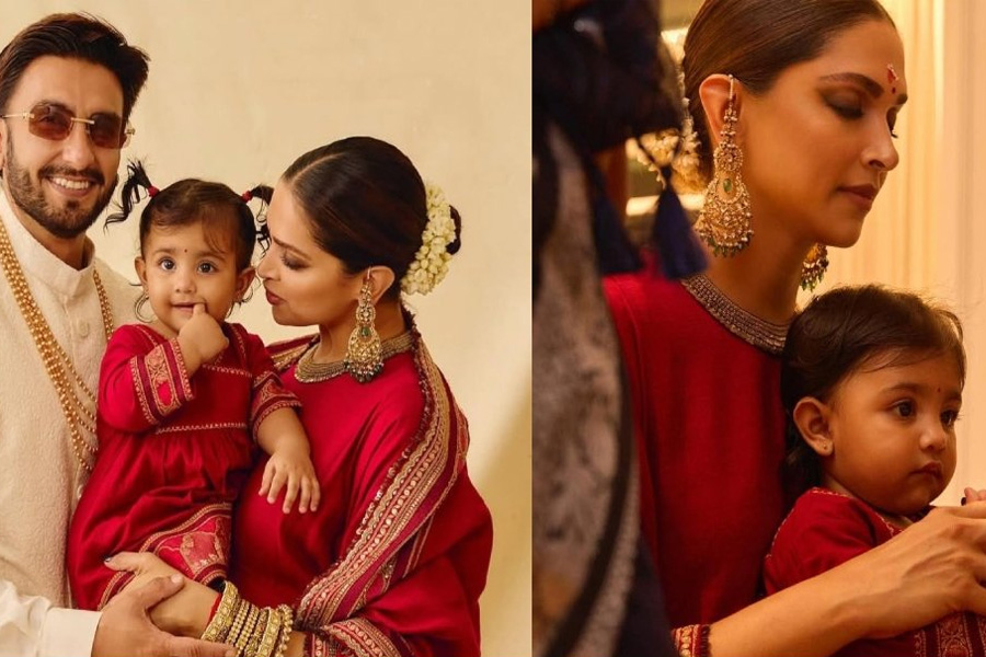 ছবিতে দেখা গেছে, মা-মেয়ে দুজনেই পরেছেন লাল চুড়িদার, সঙ্গে মানানসই সোনার গয়না। রণবীরের পরনে ছিল সাদা-ঘিয়ে রঙের শেরওয়ানি। এক ফ্রেমে তিনজনের হাস্যোজ্জ্বল মুহূর্ত-দুয়া কখনো হাসছে, কখনো বাবা-মায়ের কোলে খেলা করছে।