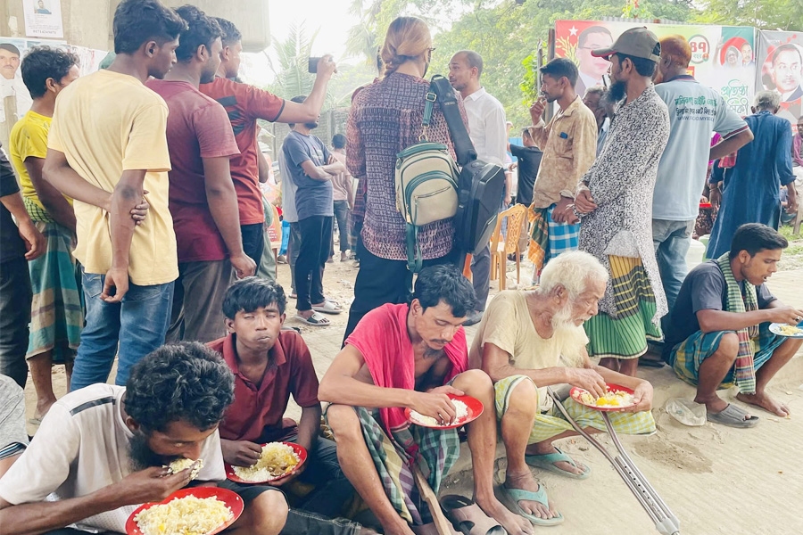 প্রথম দিনে চিকন চালের ভাত ও গরুর গোশতের আয়োজন করা হয়। রাসেল মিয়া জানান, প্রচারণার জন্য একটি নির্দিষ্ট বাজেট ছিল। তিনি বলেন, “যদি বাইরে কোনো রেস্টুরেন্টে আয়োজন করতাম, প্রচুর খরচ হতো। এ বাজেট দিয়েই আমরা এখানকার মানুষদের এক মাসের খাবার দিতে পারি। এতে প্রচারণাও হলো, মানুষও খেতে পেল।”