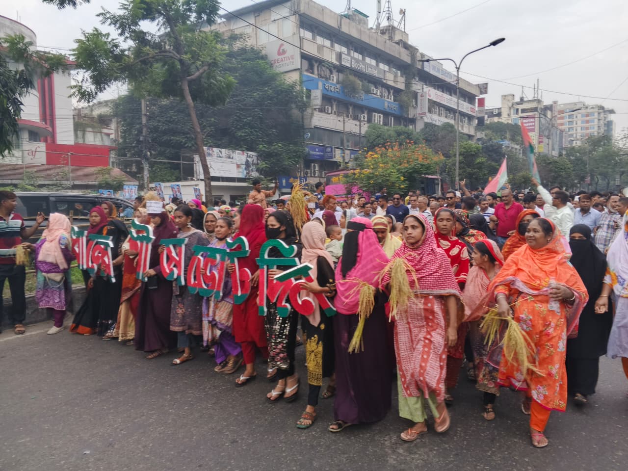 বুধবার বিকালে রাজধানীর সাইন্সল্যাবস্থ সিটি কলেজের সামনে থেকে তিনি শহরের প্রধান সড়কগুলোতে বিশাল শোভাযাত্রার নেতৃত্ব দেন।