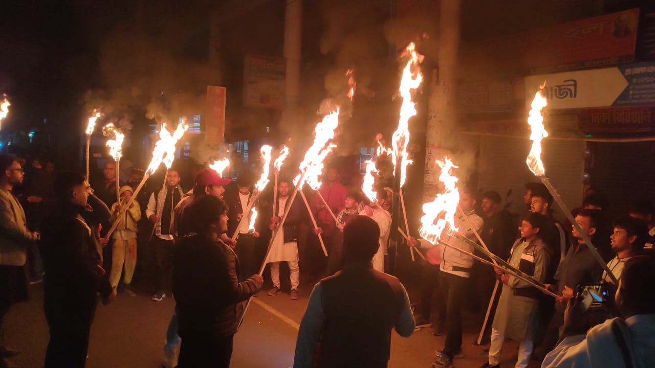 হাদির ওপর গুলিবর্ষণের প্রতিবাদে রাজবাড়ীতে মশাল মিছিল ও সমাবেশ