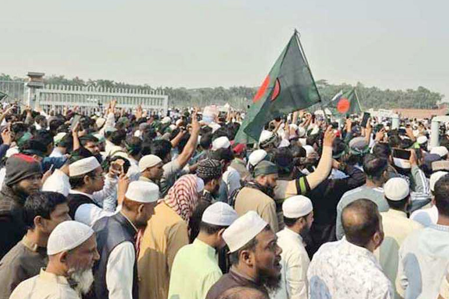 স্লোগানে প্রকম্পিত সংসদ ভবনের দক্ষিণ প্লাজা