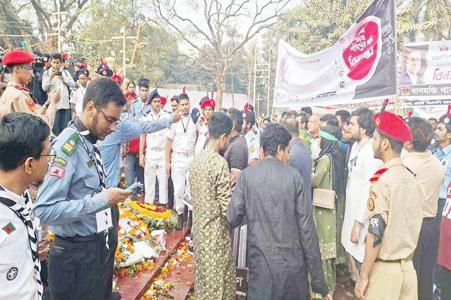 ভাষা শহীদদের প্রতি শ্রদ্ধা জানাতে শহীদ মিনারে মানুষের ঢল