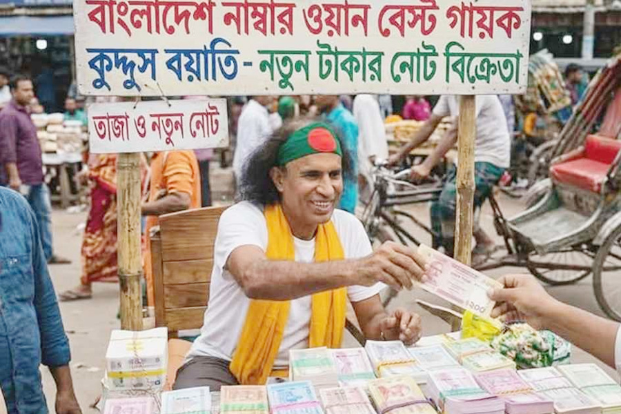 গত ১৬ মার্চ রাতে নিজের ফেসবুক অ্যাকাউন্টে কুদ্দুস বয়াতি একটি ছবি প্রকাশ করেন। ছবিতে দেখা যাচ্ছে, তিনি ফুটপাতে বসে নতুন টাকার ‘ব্যবসা’ করছেন। ছবির ক্যাপশনে রসিকতার ছলে তিনি লিখেছেন, “ফেসবুক ইনকামে লাল বাত্তি, তাই ফুটপাত ব্যাংক খুলে বসলাম। কুদ্দুস ভাইয়ের কচ কচা টাকার ব্যাংক। হেড অফিস-গুলিস্তান ফুটপাত। আগে আসলে কমে পাবেন, পরে আসলে হারাবেন।”