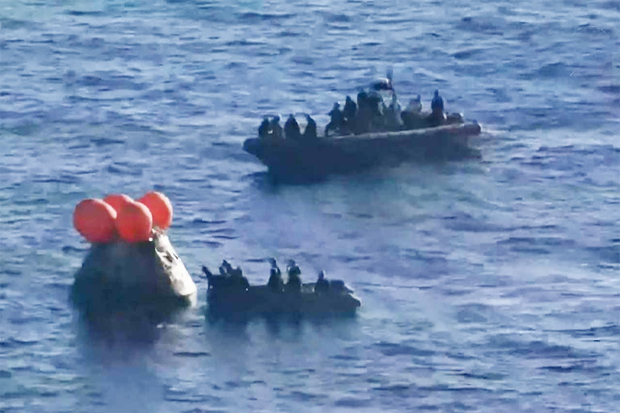 সমুদ্রে অবতরণের পর নভোচারীদের প্রথমে ওরিয়ন ক্যাপসুল থেকে একটি বিশেষ নৌযানে নেওয়া হয়, যাকে মহাকাশ বিজ্ঞানের ভাষায় বলা হয় ‘ফ্রন্ট পোর্চ’। সেখান থেকে হেলিকপ্টারযোগে তাদের মার্কিন নৌবাহিনীর অত্যাধুনিক উদ্ধারকারী জাহাজ ‘ইউএসএস জন পি মুরথা’র মেডিক্যাল বে-তে নিয়ে যাওয়া হয়।