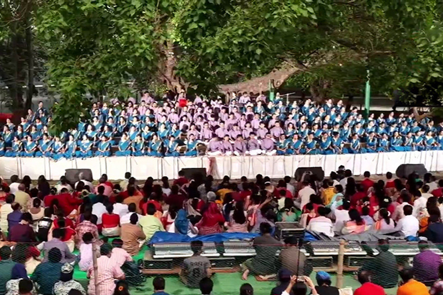 মঙ্গলবার (১৪ এপ্রিল) ভোরে রাজধানীর রমনা বটমূলে সাংস্কৃতিক সংগঠন ছায়ানটের আয়োজিত অনুষ্ঠানের মধ্য দিয়ে নববর্ষের আনুষ্ঠানিক সূচনা হয়। ভোরের নির্মল পরিবেশে সংগীত, আবৃত্তি ও নৃত্যের সম্মিলিত পরিবেশনা উপস্থিত দর্শনার্থীদের মুগ্ধ করে। ‘এসো হে বৈশাখ’সহ বিভিন্ন দেশাত্মবোধক ও ঐতিহ্যবাহী গানে নতুন বছরকে স্বাগত জানানো হয়।