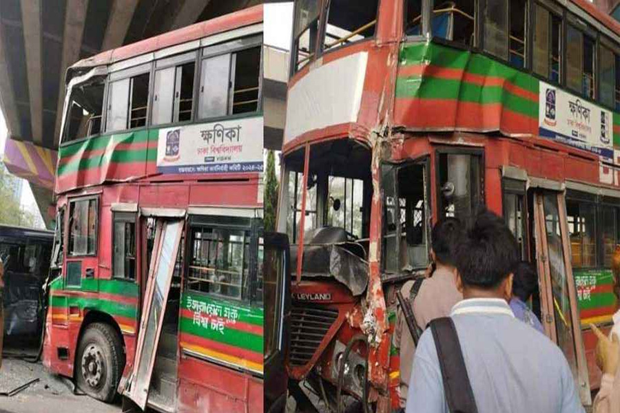 কারওয়ান বাজারে ঢাবির বাস দুর্ঘটনা, আহত ৮ শিক্ষার্থী