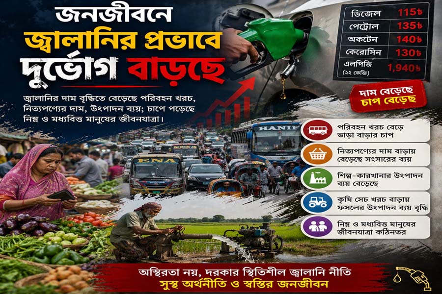 বিশেষজ্ঞরা বলছেন, জ্বালানির মূল্যবৃদ্ধির প্রভাব সরাসরি ও পরোক্ষ ভাবে পুরো অর্থনীতিতে পড়ে। প্রথমেই পরিবহন খরচ বেড়ে যায়, এরপর শিল্প উৎপাদন, কৃষি সেচ এবং সরবরাহ ব্যবস্থায় ব্যয় বৃদ্ধি পায়। ফলে পণ্যের দাম বাড়তে থাকে এবং মূল্যস্ফীতির ওপর চাপ সৃষ্টি হয়। এতে সবচেয়ে বেশি ক্ষতিগ্রস্ত হন নিম্ন ও মধ্যবিত্ত শ্রেণির মানুষ। আয়ের বিপরীতে ব্যয় বাড়তে থাকায় শ্রমজীবী মানুষের জীবনযাত্রা আরও কঠিন হয়ে ওঠে।