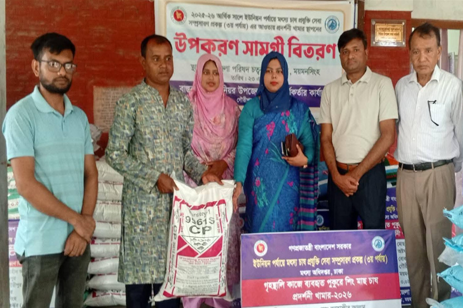 গৌরীপুরে মৎস্য চাষিদের মাঝে উপকরণ বিতরণ