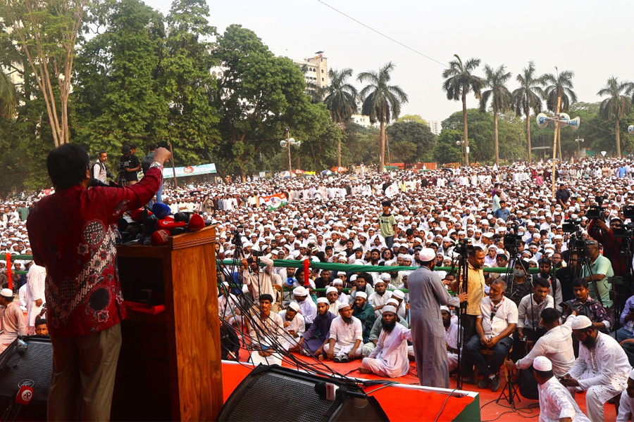 শনিবার (২৪ এপ্রিল) আয়োজিত এই সমাবেশে খেলাফত মজলিসের আমীর মাওলানা মামুনুল হক সভাপতিত্ব করেন। এতে আরও বক্তব্য দেন বাংলাদেশ জামায়াতে ইসলামীর আমির ডা. শফিকুর রহমান, জাতীয় নাগরিক পার্টির (এনসিপি) আহ্বায়ক নাহিদ ইসলাম এবং লিবারেল ডেমোক্রেটিক পার্টির (এলডিপি) চেয়ারম্যান অবসরপ্রাপ্ত কর্নেল অলি আহমদ।