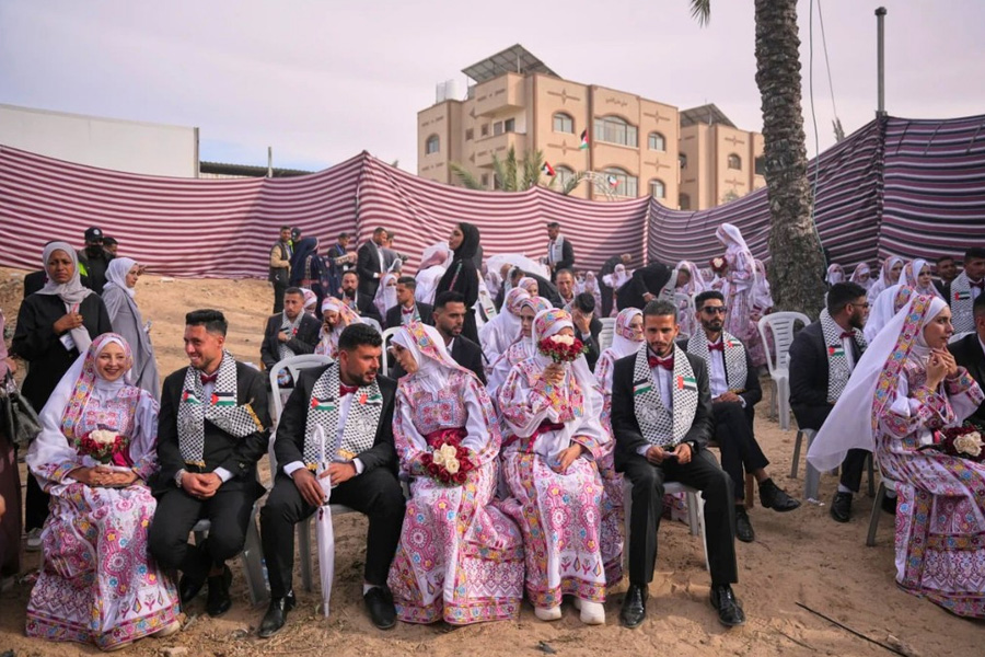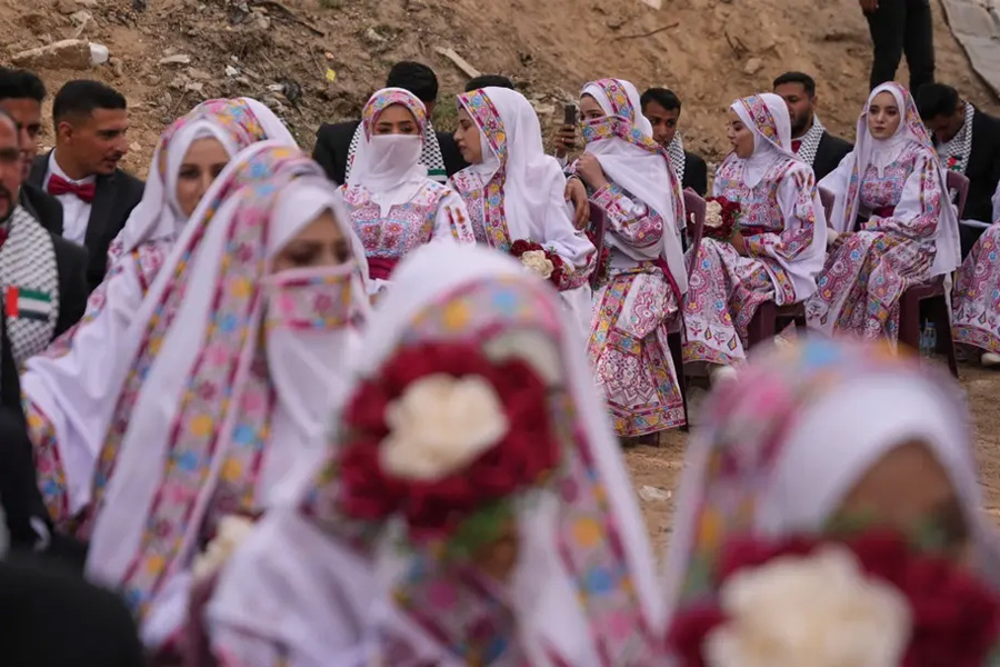 যুদ্ধবিধ্বস্ত গাজা উপত্যকায় প্রতিদিনই মৃত্যু, ধ্বংস আর অনিশ্চয়তার খবর। সেই অন্ধকার বাস্তবতার মাঝেই কিছুটা আলোর ঝলক নিয়ে এলো এক ব্যতিক্রমী আয়োজন-৩০০ যুগলের গণবিয়ে।