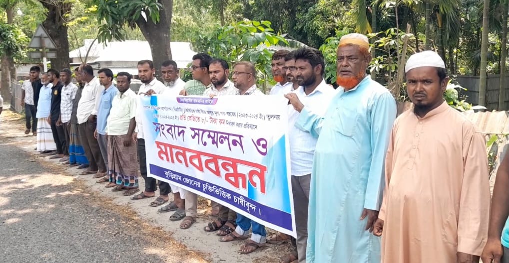 রবিবার (৪ মে) দুপুরে কুড়িগ্রাম সদরের ত্রিমোহনী এলাকায় বাংলাদেশ কৃষি উন্নয়ন কর্পোরেশন অফিসের সামনে এ মানববন্ধন ও সংবাদ সম্মেলন করা হয়।