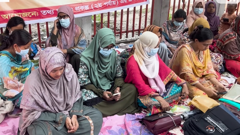 ঈদের দিনেও চার দফা দাবিতে রাজধানীর জাতীয় প্রেসক্লাবের সামনে অবস্থান কর্মসূচি পালন করছেন মহিলা ও শিশুবিষয়ক মন্ত্রণালয়ের অধীন ‘তথ্য আপা’ প্রকল্পের কর্মীরা।