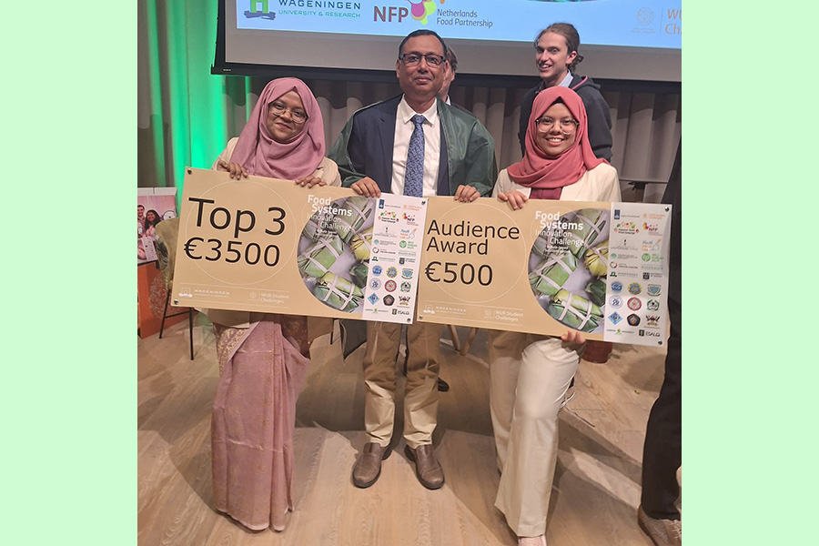 ওয়াগেনিঙ্গেন ইউনিভার্সিটি অ্যান্ড রিসার্চ ও নেদারল্যান্ডস ফুড পার্টনারশিপ আয়োজিত ফুড সিস্টেমস ইনোভেশন চ্যালেঞ্জ ২০২৫-এ গৌরবোজ্জ্বল সাফল্য অর্জন করেছে বাংলাদেশ কৃষি বিশ্ববিদ্যালয়ের (বাকৃবি) শিক্ষার্থীরা।