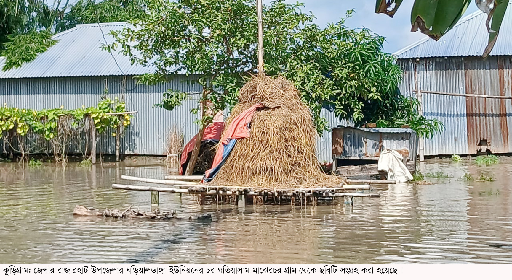 অতিবৃষ্টি এবং উজান থেকে নেমে আসা পানির তোড়ে কুড়িগ্রামের রাজারহাট উপজেলার ঘড়িয়ালডাঙ্গা ইউনিয়নে একদিনেই বিলিন হয়েছে ১৬টি বসতবাড়িসহ ৪টি মসজিদ। হু-হু করে পানি বৃদ্ধি পাওয়ায় নদী তীরবর্তী ৪টি গ্রামে পানি প্রবেশ করায় ৭ শতাধিক পরিবারের প্রায় ৩ হাজার মানুষ পানিবন্দী হয়ে পরেছে। এদিকে তীব্র স্রোতের কবলে প্রায় ৫ একর ফসলি জমিন নদীতে বিলিন হয়ে গেছে। ছাড়াও ভাঙনের মুখে রয়েছে স্থানীয় জাতের আগাম পাকাধান ক্ষেত।