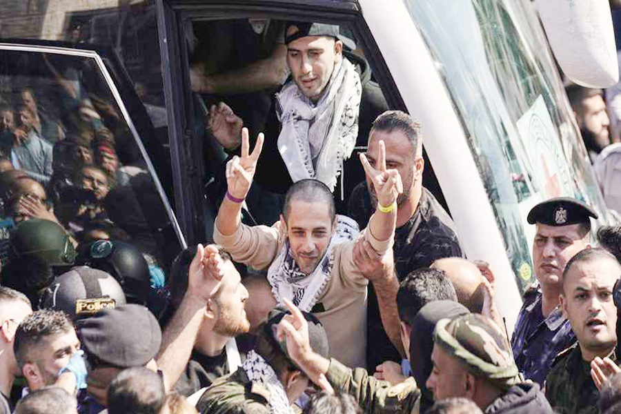 অন্যদিকে ইসরায়েলি কারাগার থেকে মুক্ত হওয়া ফিলিস্তিনিদের বহনকারী বাস গাজায় পৌঁছালে হাজারো মানুষ আনন্দে তাদের বরণ করে নেয়। গাজার রাস্তায় তখন উৎসবমুখর পরিবেশ বিরাজ করে।