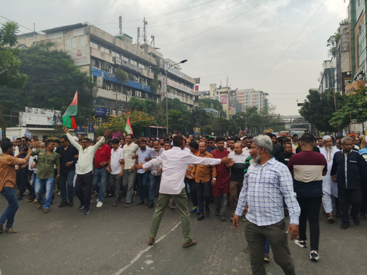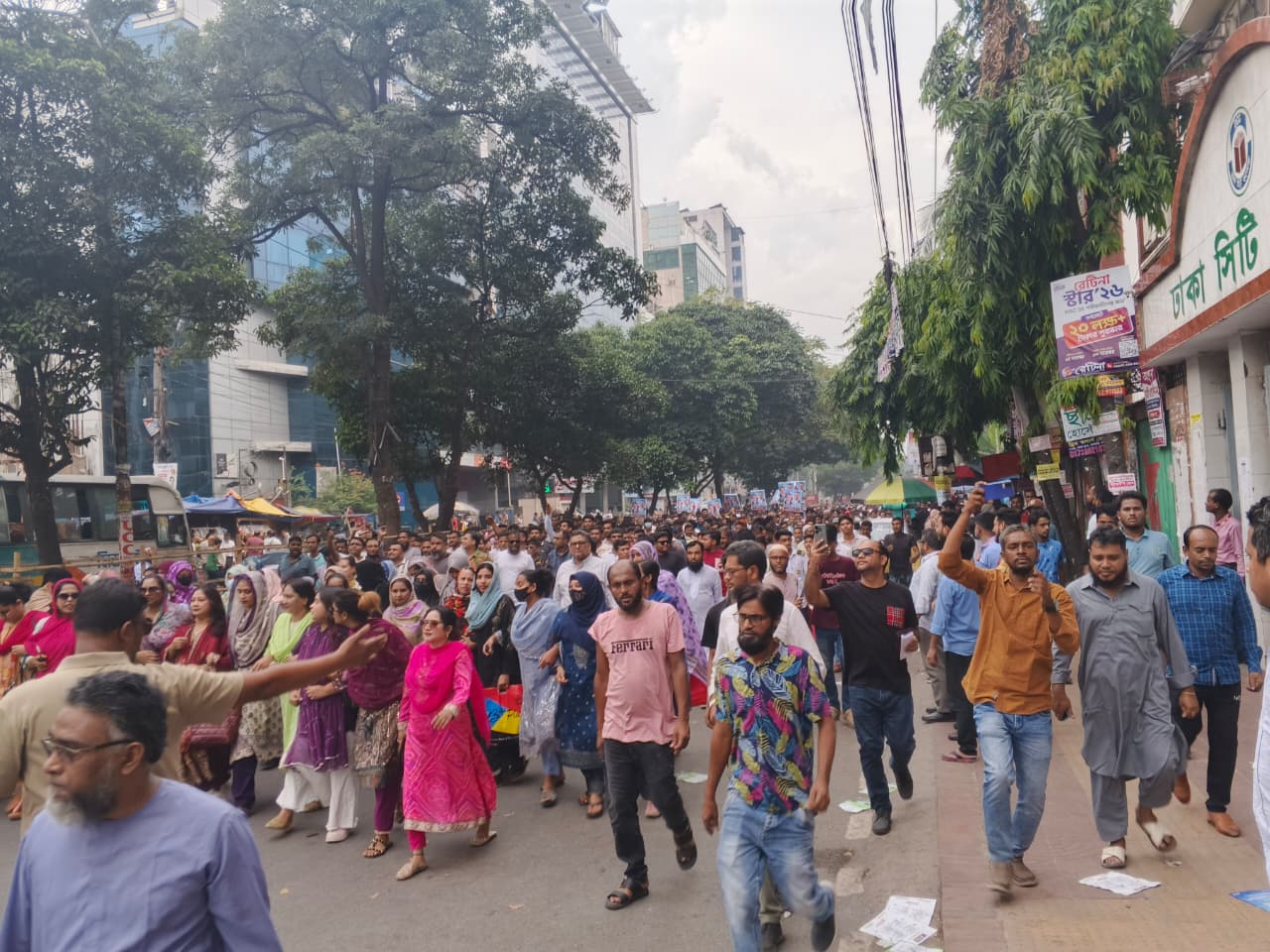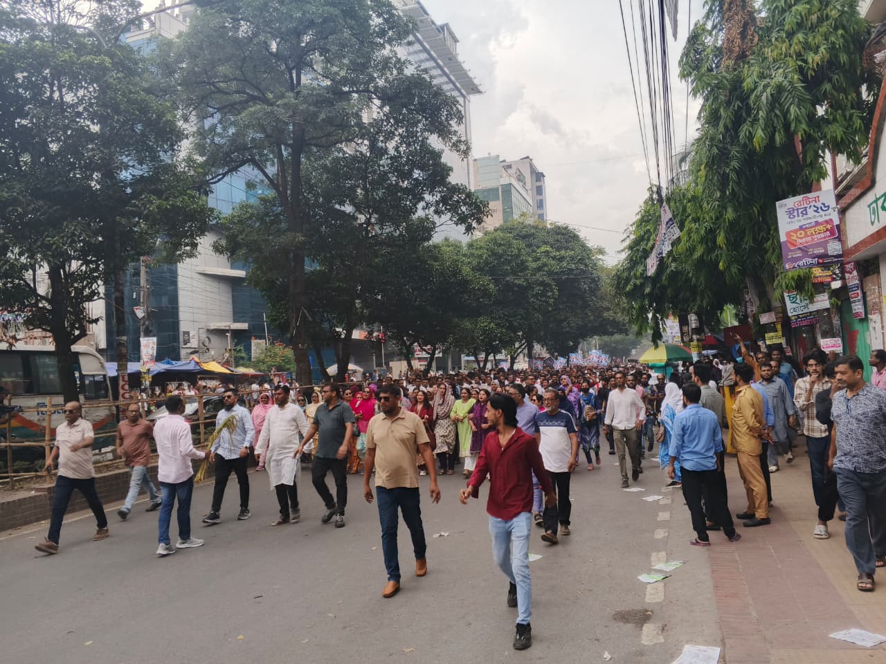 বুধবার বিকালে রাজধানীর সাইন্সল্যাবস্থ সিটি কলেজের সামনে থেকে তিনি শহরের প্রধান সড়কগুলোতে বিশাল শোভাযাত্রার নেতৃত্ব দেন।