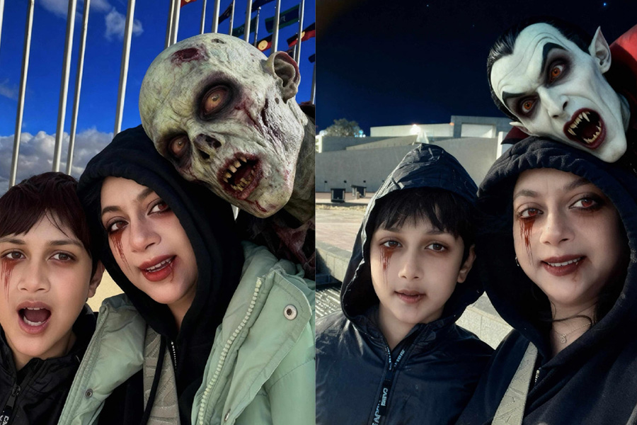 ছবিগুলোতে দেখা যায়, একমাত্র ছেলেকে নিয়ে ভূতের সাজে অংশ নিয়েছেন তিনি। তাদের সঙ্গে কেউ মমির সাজে, কেউবা জম্বি রূপে দেখা যায়। ভয়ংকর সাজের মধ্যেও আনন্দে মেতে উঠেছিলেন তারা।