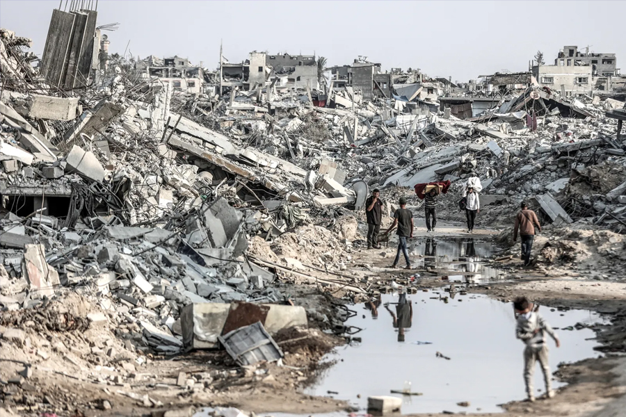 তিনি বলেন, “ইসরায়েলি হামলায় প্রায় ২ লাখ ১০ হাজার মিটার সড়ক, ৩ লাখ মিটার পানি সরবরাহ লাইন এবং ১ লাখ ২০ হাজার মিটার ড্রেনেজ লাইন ধ্বংস হয়েছে। শহর কার্যত অচল হয়ে গেছে।”