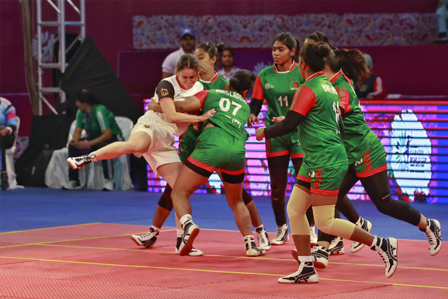 শুরু থেকেই শ্রাবণী মল্লিক, বৃষ্টি বিশ্বাস, স্মৃতি আক্তারদের দুর্দান্ত রেইড ও দৃঢ় ডিফেন্সে চাপে পড়ে জার্মানি। ম্যাচের মাত্র পাঁচ মিনিটেই জার্মান দলকে প্রথমবার অলআউট করে বাংলাদেশ, তখন স্কোর ১০-০। ম্যাচের নিয়ন্ত্রণ পুরোপুরি নিজেদের হাতে রেখে প্রায় সব খেলোয়াড়কে পরখ করে নেওয়ার সুযোগ পায় স্বাগতিক দল।
