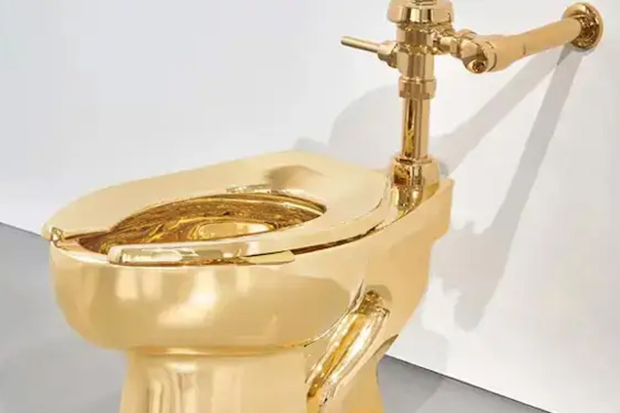 নিউ ইয়র্কের সথেবিজ় নিলামে এক অদ্ভুত শিল্পকর্ম বিক্রি হয়েছে। ১৮ ক্যারেট খাঁটি সোনা দিয়ে তৈরি ১০১ কেজি ওজনের সম্পূর্ণ কার্যকরী একটি টয়লেটের নাম ‘আমেরিকা’, যা বিক্রি হয়েছে ১.২১ কোটি টাকা (১২.১ মিলিয়ন ডলার) মূল্যে। ইতালির প্রখ্যাত শিল্পী মৌরিজিও ক্যাটেলান এই শিল্পকর্মটির মাধ্যমে অতিধনীদের জীবনযাপনকে ব্যঙ্গ করেছেন।