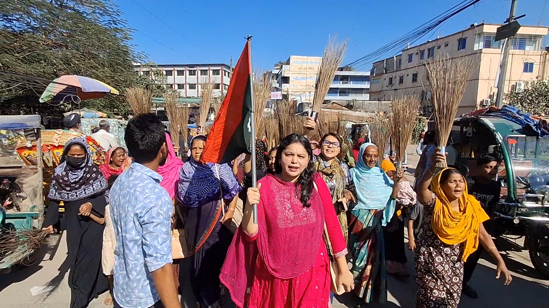 মহিলাদের ঝাড়ু মিছিল মাজহারুল ইসলামের মনোনয়ন বাতিল দাবিতে