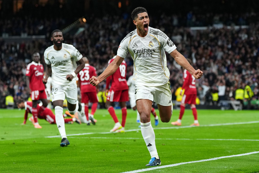 ম্যাচের প্রথমার্ধ শেষ হওয়ার সাত মিনিট আগে এগিয়ে যায় রিয়াল। রদ্রিগোর নেওয়া ফ্রি-কিক থেকে দুর্দান্ত হেডে জাল খুঁজে নেন জুড বেলিংহ্যাম।