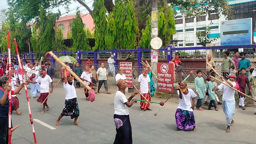 নগরবাসীর নজর কাড়তে, ঐতিহ্যবাহী লাঠিখেলা, জেলে, কামার কুমোর, লাঙ্গল-জোয়াল ও বিয়ের পালকি, রঙিন পোশাকে, বাদ্যযন্ত্রের তালে, গানে গানে আবহমান গ্রাম বাংলার হারিয়ে যাওয়ার ঐতিহ্য ফুটিয়ে তোলা হয়। এ সময় শোভাযাত্রাটি দেখতে রংপুরের রাস্তার দু’ধারে ভিড় করে নগরীর উৎসুক জনতা। পরে শোভাযাত্রাটি জিলা স্কুল মাঠ থেকে বের হয়ে নগরীর কাচারি বাজার, টাউনহল, সিটি বাজার, পায়রা চত্বর, জাহাজকোম্পানি মোড় হয়ে পুনরায় জিলা স্কুল মাঠের বটতলায় গিয়ে শেষ হয়।